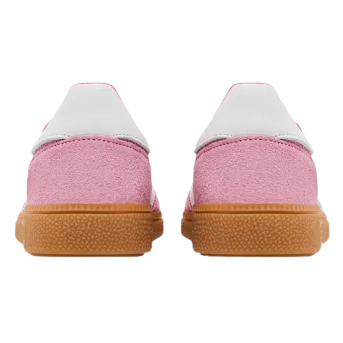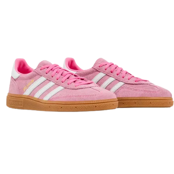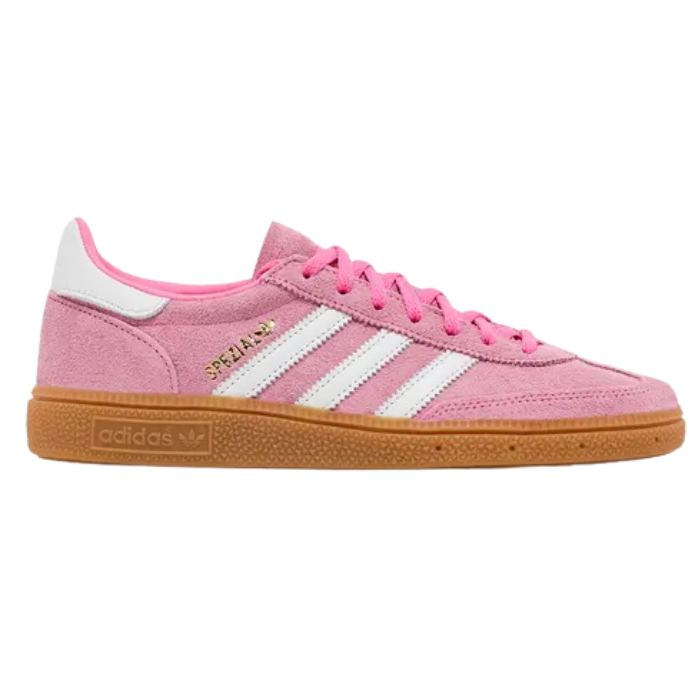 The Wmns Handball Spezial 'Lucid Pink White' features a premium suede upper in vivid Lucid Pink, complemented by yellow accents on the 3-Stripes and heel tab. Its low-profile, retro court-inspired design offers a reinforced heel, classic T-toe construction, textile lining, and a high-traction gum rubber outsole, ensuring stylish comfort and everyday durability for women.