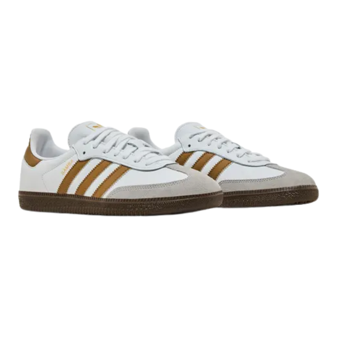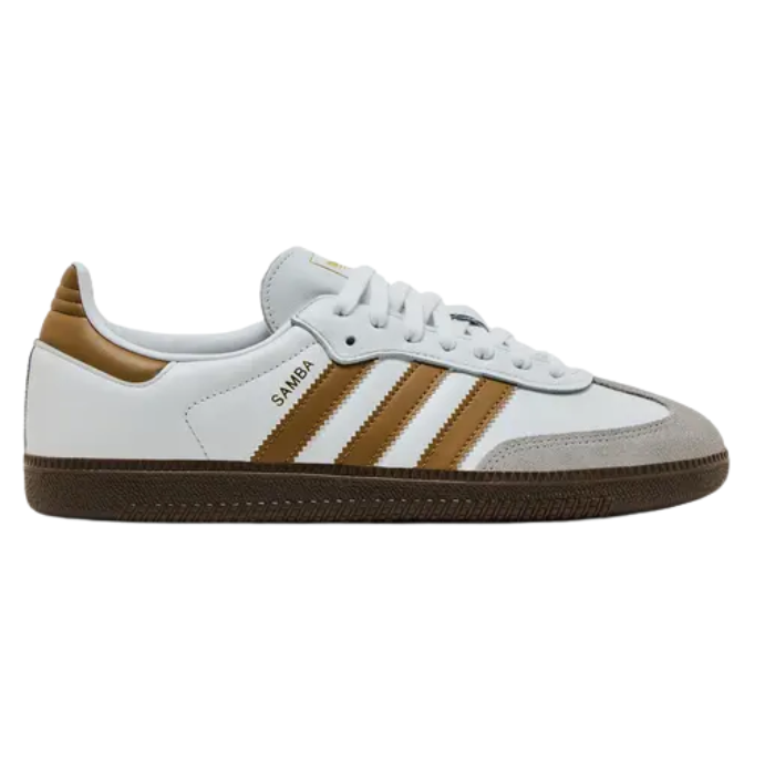 The Adidas Samba OG 'White Brown Desert' features a soft, premium leather upper in crisp cloud white with brown suede overlays. Paired with a durable gum sole, this classic low-profile silhouette delivers authentic Samba style and comfort, perfect for both casual wear and street-inspired looks.