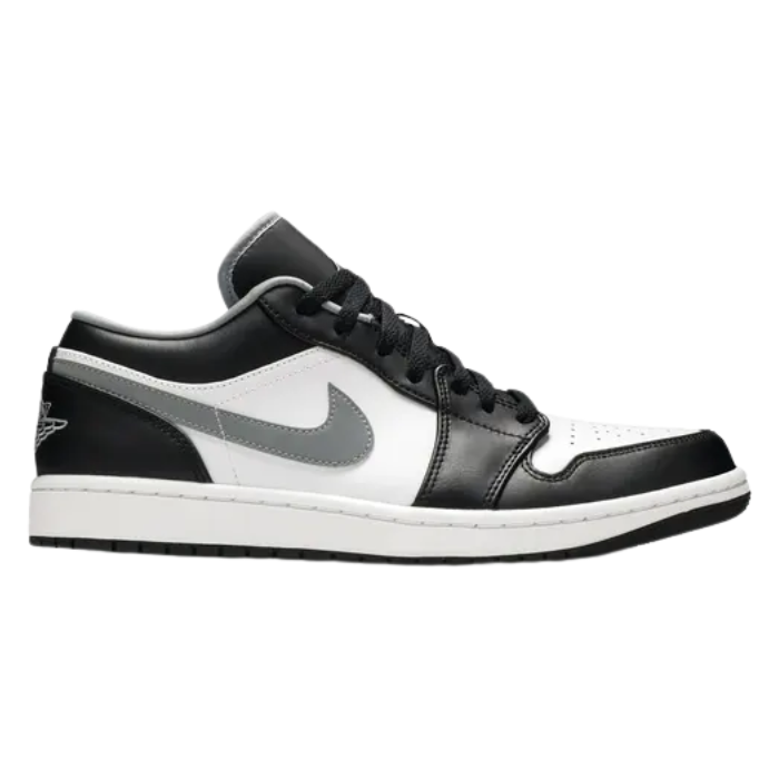 The Air Jordan 1 Low 'Black White Grey' offers a timeless, versatile palette on premium white leather with black suede overlays at the forefoot and collar. Light grey accents highlight the Swoosh and heel tab, complemented by classic Wings branding and a padded ankle collar. Nike Air cushioning in the midsole delivers lightweight comfort, while the durable rubber outsole ensures reliable everyday traction.