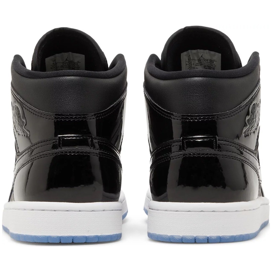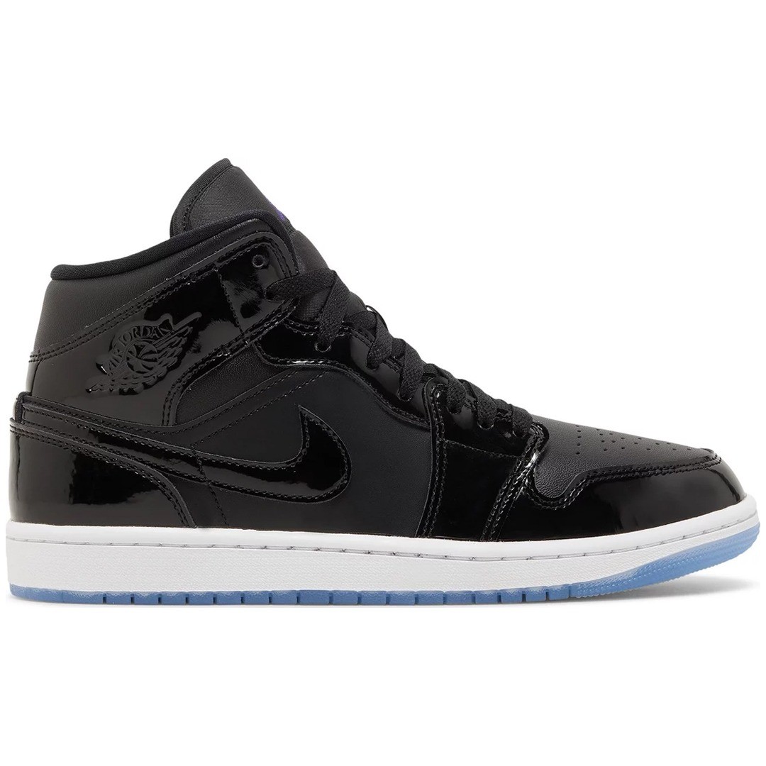 The Air Jordan 1 Mid SE 'Space Jam' features a sleek and striking colorway that combines deep black with vibrant accents. The sneaker’s upper is crafted from premium leather and suede, offering a luxurious look and feel. The design is highlighted by Space Jam-inspired details, including a glossy patent leather Swoosh and contrasting color elements that evoke the iconic film. The Air Jordan 1 Mid Space Jam is not only visually captivating but also maintains the classic elements that made the Air Jordan 1 a sneaker icon, including the signature Wings logo and perforated toe box for added breathability.