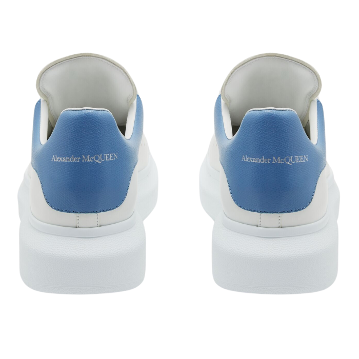 The McQueen Oversized Sneakers White Blue are known for their superior comfort and high-end construction. The smooth leather upper provides durability, while the oversized platform sole offers excellent cushioning and support, making these sneakers ideal for all-day wear. The blue suede heel accent not only adds a unique flair but also enhances the shoe’s overall design, giving it a fresh and stylish appeal. The subtle Alexander McQueen logo embossed on the heel and tongue adds a touch of luxury branding without overpowering the minimalist aesthetic of the shoe.