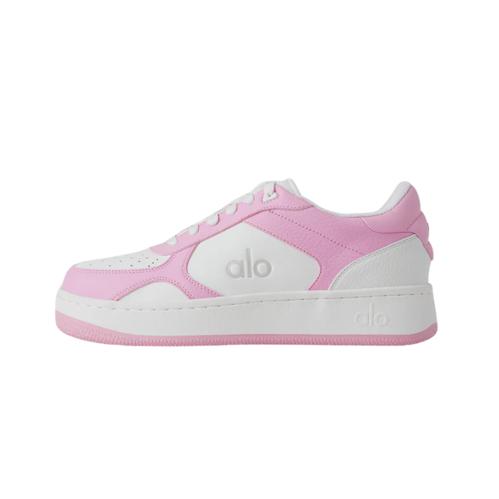 The ALO Recovery Mode "Pink White" sneaker combines high-rebound foam cushioning with ergonomic arch and ankle support for lasting comfort. Crafted in cruelty-free vegan leather with a seamless no-slip interior and durable exterior sole, it delivers performance recovery and modern streetwear style for all-day wear.