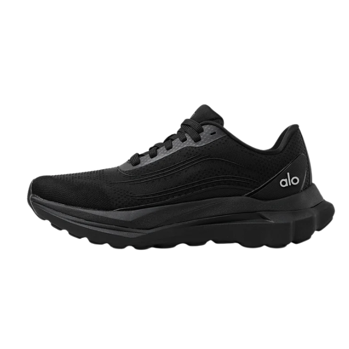 The ALO Runner "Black" is a unisex performance sneaker built for versatile terrain. It features a breathable double-layer mesh upper, stabilizing heel clip, dynamic dual-density midsole, and multi-terrain outsole grip pods. Lightweight and supportive, it delivers comfort, impact absorption, and sleek style—crafted using eco-conscious materials for running and daily wear.