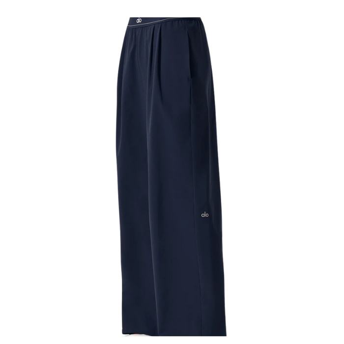 The Alo Yoga Suit Up Trouser features a buttery smooth polyester-elastane blend with a flowy, breathable fit. It offers a flattering loose straight-leg cut, signature boxer-style elastic waistband, front pleats, and side pockets for practicality. Versatile for dressing up or down, it combines style, comfort, and performance.