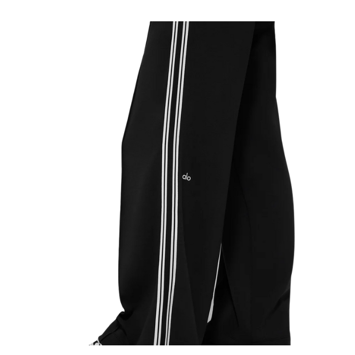 The Alo Yoga Track Star Wide Leg Pant features contrasting stripes that add movement and polish to its relaxed, wide-leg silhouette. Designed for effortless off-duty style, it combines comfort with a cool edge, making it perfect for casual wear or transitional looks between workouts and streetwear.