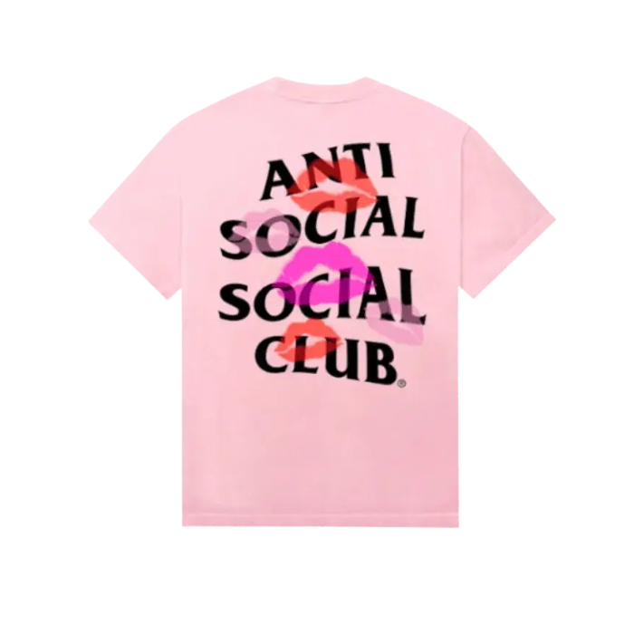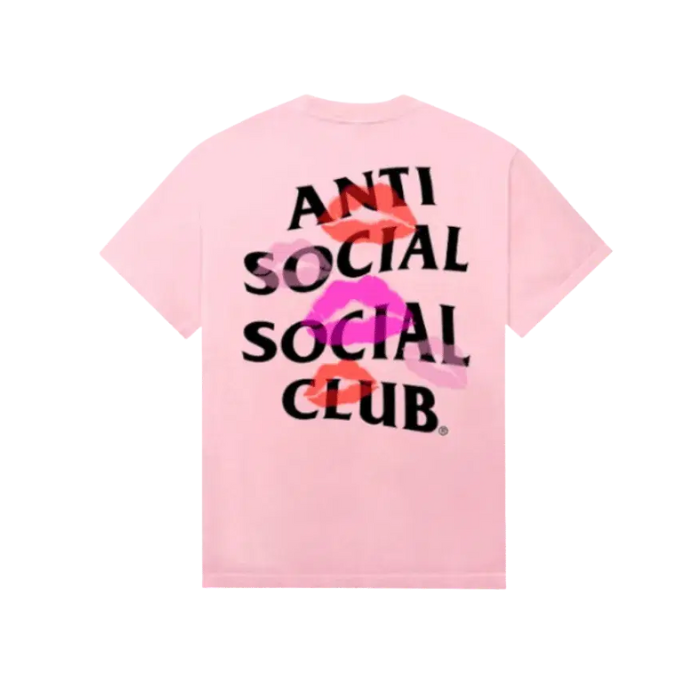 The Anti Social Social Club Kisses Tee in Pink features a soft 100% cotton construction with a relaxed, oversized fit for casual comfort. Bold "Kisses" graphic print dominates the front in contrasting white, embodying the brand's signature ironic streetwear vibe. Ribbed crewneck, short sleeves, and subtle branding on the sleeve complete this playful, versatile staple.