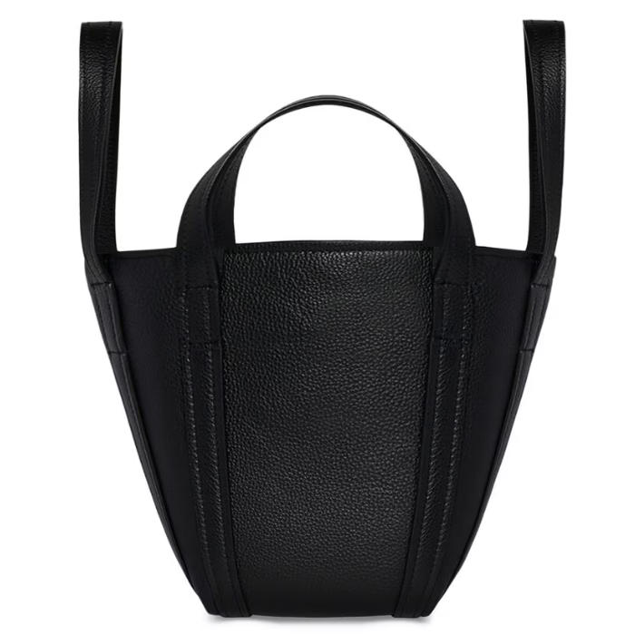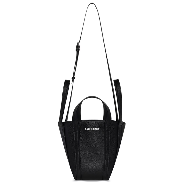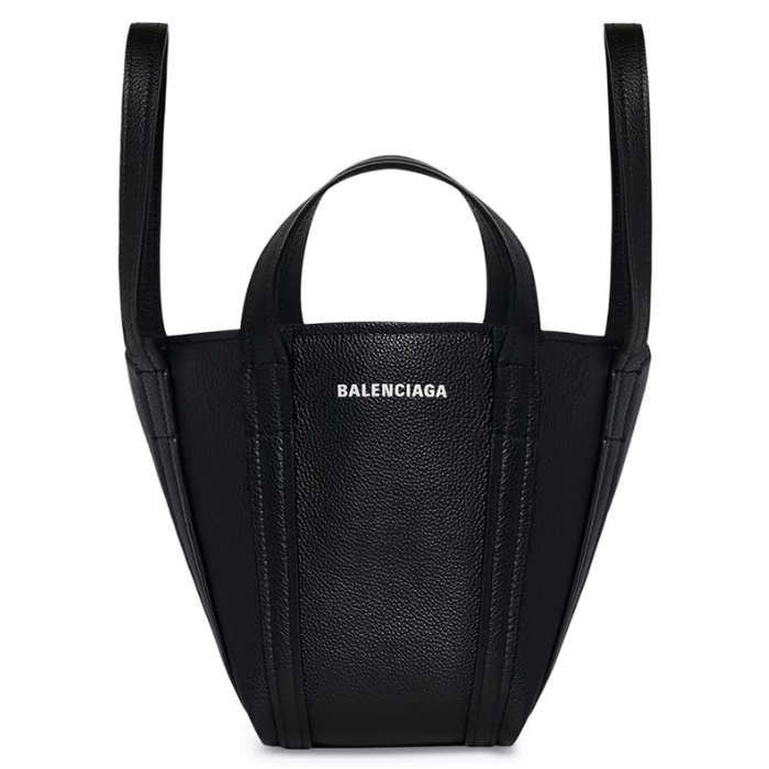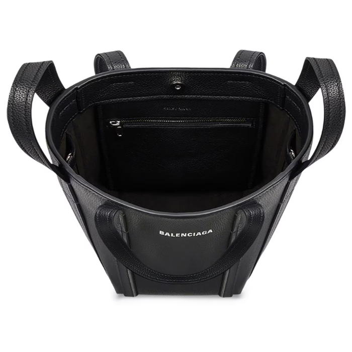 • Dimensions: L8,2 x H10,2 x W5,5 inch • Grained calfskin • North-south shoulder tote bag • Two top handles • Two handles on sides • Adjustable and removable strap (18,9 inch) • Balenciaga logo printed at front • Semi-shiny palladium hardware • Snapped closure • 1 inner zipped pocket • Made in Italy