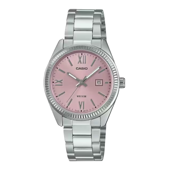 The Casio Enticer Water Resistance Watch "Pink" offers a stylish pink dial with a durable stainless steel or leather strap. It features mineral glass for scratch resistance, 50 meters water resistance, and precise analog quartz movement. This elegant timepiece combines feminine charm with reliable everyday performance.
