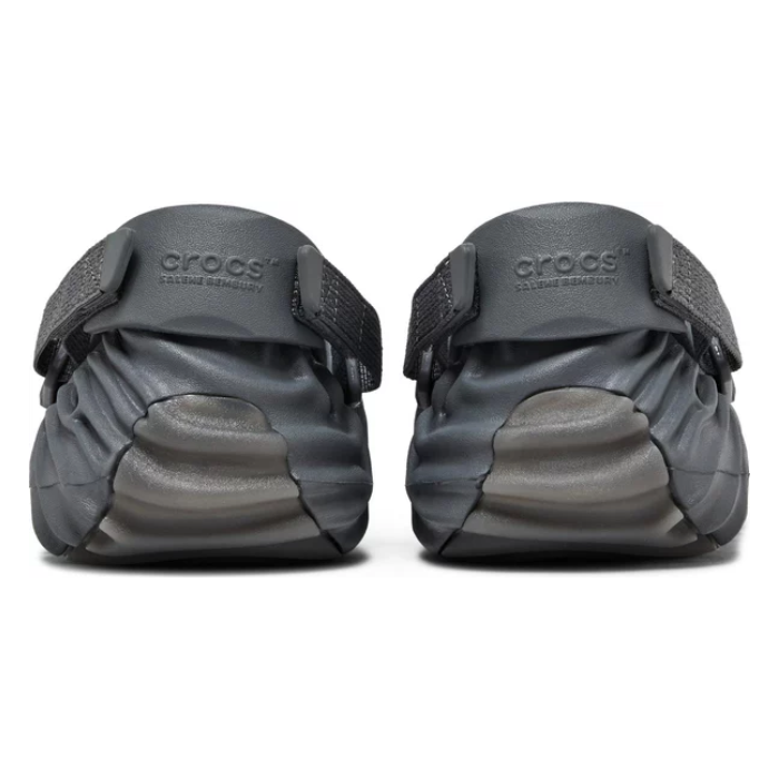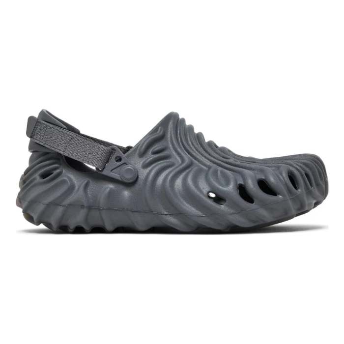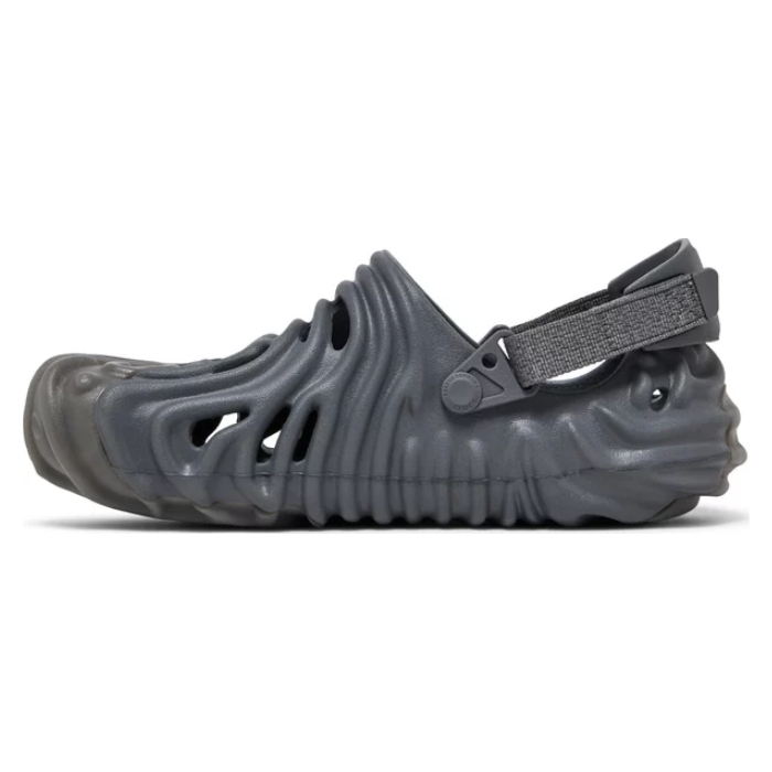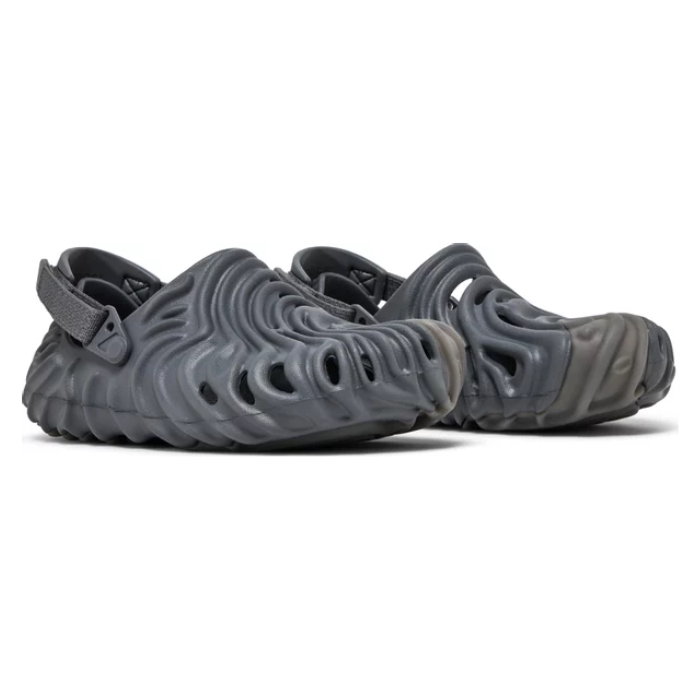 The Salehe Bembury x Crocs Pollex Clog 'Niagra' updates the collaborative slip-on with a monochromatic grey finish. The neutral palette is complemented by a lightweight foam build, featuring flowing etched lines inspired by Bembury’s fingerprints. While the concave ridges function as a water siphoning system, targeted vents in the forefoot and heel offer improved breathability. Dual Crocs and Salehe Bembury branding is embossed on the adjustable heel strap.
