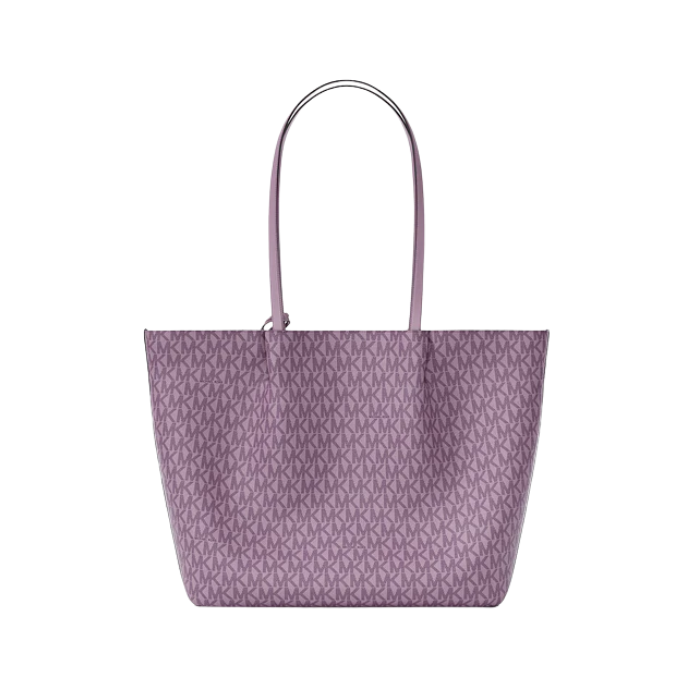 The Michael Kors Carson Large Signature Logo Tote Bag in light quartz showcases logo-print coated canvas (74% coated canvas/19% polyester/7% polyurethane) with trim (60% polyurethane/40% polyester) and silver-tone hardware for elegant everyday capacity. Measuring 17.5"W x 11.75"H x 7.5"D with 10.75" handle drop, it features snap/zip closure, interior back slip and center zip pockets, plus 100% polyester lining—spacious style for work or travel essentials.