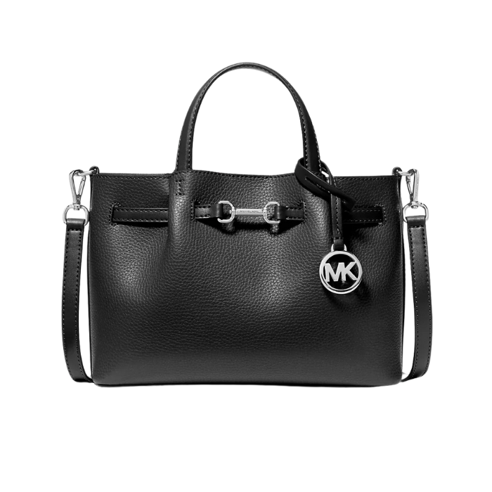 Michael Kors-defining modern glamour since 1981. Satchel Pebbled leather 100% leather Trim: 60% polyurethane/20% cotton/20% polyester Silver-tone hardware 10.5W X 7.25H X 5D Interior details: back slip pocket, center zip compartment Handle drop: 3.5" Zip/snap fastening Dust bag not included Imported