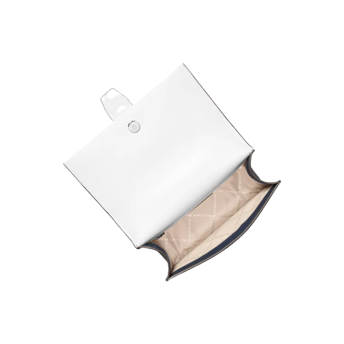 Michael Kors-defining modern glamour since 1981. Crossbody bag Logo-print canvas 89.4% coated canvas/9.6% polyester/1% polyurethane Trim: 88.92% coated canvas/11.08% polyester Silver-tone hardware 8W X 6H X 3D Adjustable strap: 12.5-21.5 Exterior details: back and front slip pockets Interior details: back zip pocket Lining: 100% polyester Turn-lock fastening Dust bag not included Imported