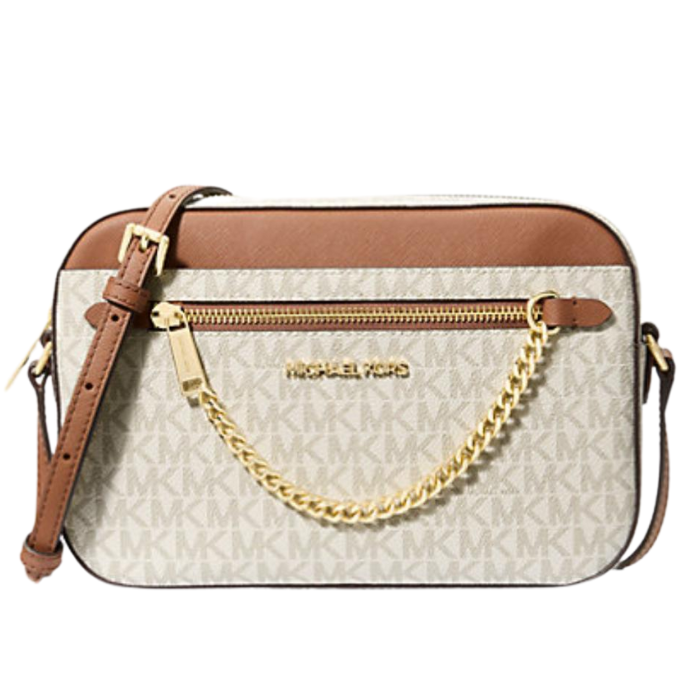 Crafted from our Signature-print canvas for novelty appeal, the Jet Set crossbody bag is designed in a sleek, compact silhouette. A polished chain-link zipper pull delivers standout style, while the pocketed interior is perfectly sized for a day’s worth of essentials. Wear it while commuting, running errands or taking a weekend getaway.