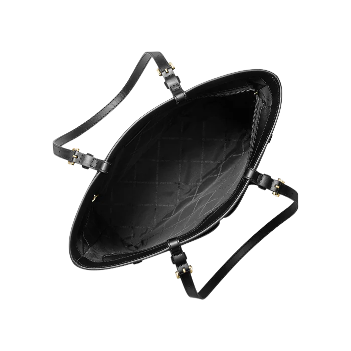 With just enough structure and a functional design, the Jet Set tote bag is a year-round essential. This sleek carryall features exterior slip pockets that are sized to safely hold a phone, card case and umbrella, while the adjustable straps will easily slip over your shoulder. We think it’s a must-have accessory for morning commutes and weekend trips alike. Tote bag Polyurethane blend 60% polyurethane/20% cotton/20% polyester 14.5W X 10.25H X 6.75D Gold-tone hardware Exterior details: 2 front slip pockets Interior details: back zip pocket, 2 front slip pockets Lining: 100% polyester Imported