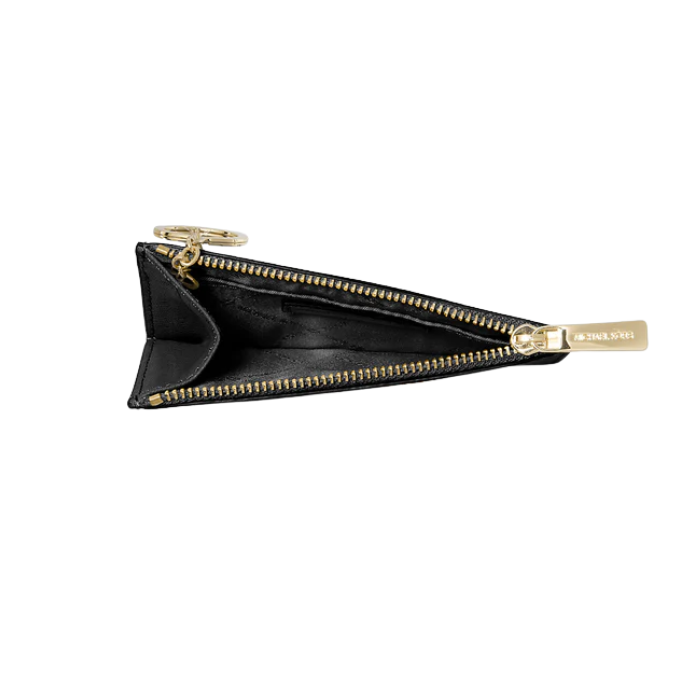 Stashing loose change has never looked so sophisticated. Made from Saffiano leather, our Jet Set Travel coin pouch features interior card slots and a back ID window for easy access. Coin pouch Leather 100% leather from tanneries meeting the highest standards of environmental performance Gold-tone hardware 5.25W X 3.75H X 0.25D Exterior details: back slip pocket Interior details: 2 back card slots, back ID window, back slip pocket Lining: 100% polyester Zip fastening Dust bag not included Imported
