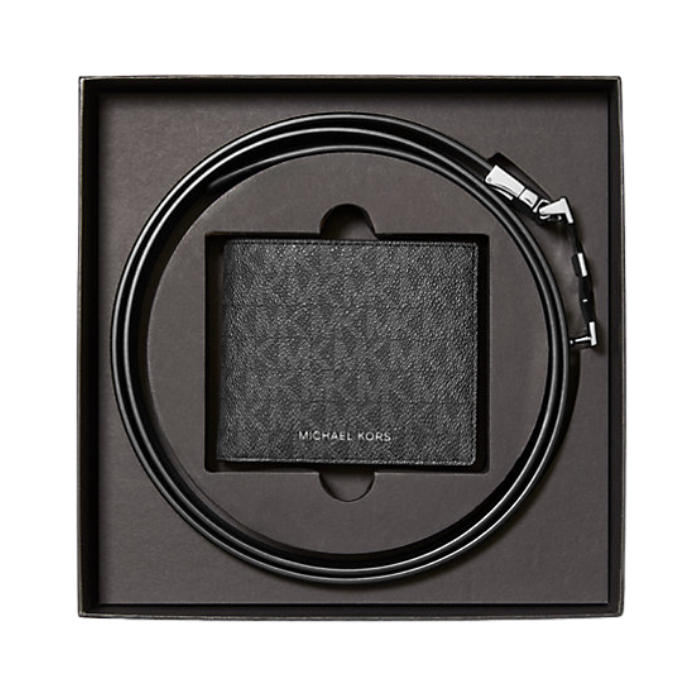 The Michael Kors Signature Logo Wallet and Reversible Belt Gift Set in Black flips modern convenience on its head by serving up luxury that you can actually use every single day - no museum displays or glass cases required. Gift it, keep it, flex it; the set pairs a sleek, compact wallet built for efficiency with a sharp reversible belt designed to flip between looks in seconds. Your daily essentials just scored a premium-level upgrade built for style play and street cred, all ready to go when you are.