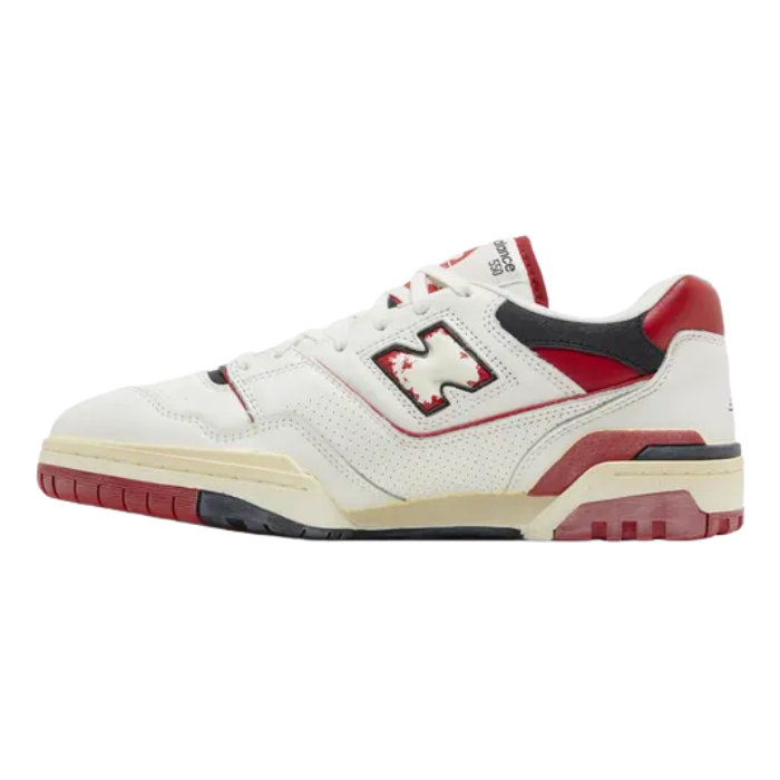 The New Balance 550 ‘Vintage Pack Team Red’ revives 1989 hoops heritage with a sea salt leather base, aged-look midsole, and bold team red accents on the N logo, collar, and outsole. Vintage-yellowed details add retro character, while a padded tongue, breathable perforations, and sturdy rubber cupsole deliver everyday comfort and reliable court-inspired traction.