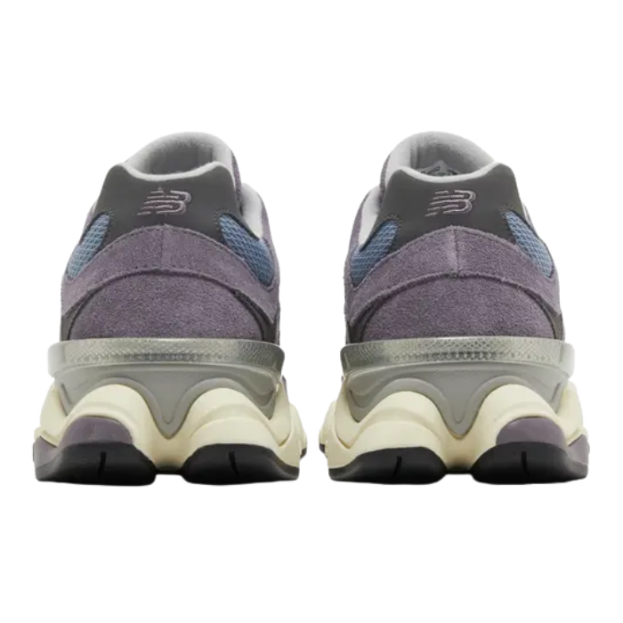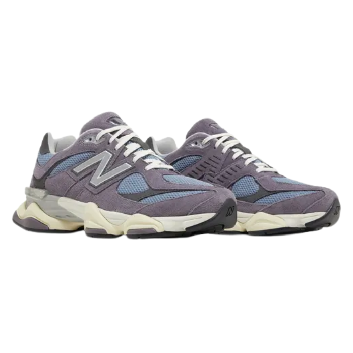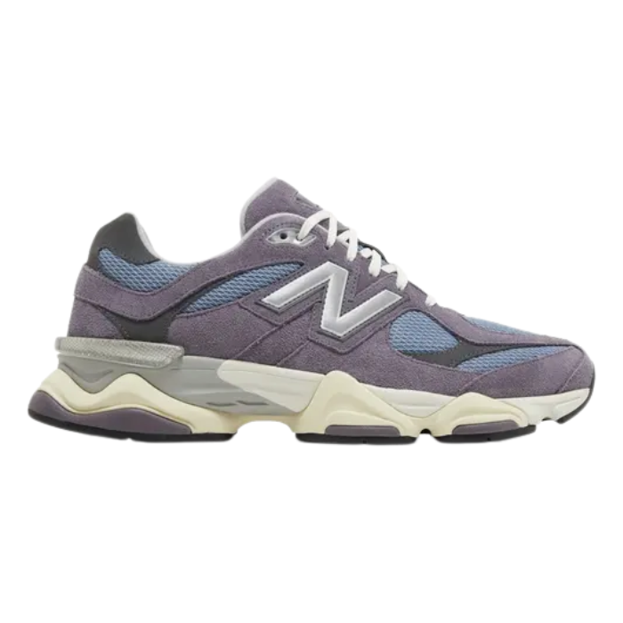 The New Balance 9060 'Shadow Purple' fuses retro runner aesthetics with futuristic flair through a mesh and suede upper in subtle shadow purple tones with neutral grey accents. Its chunky sculpted midsole features ABZORB and SBS cushioning for plush impact protection, while wavy overlays and a stability web enhance support. Reflective details and a grippy outsole make it a versatile streetwear standout.