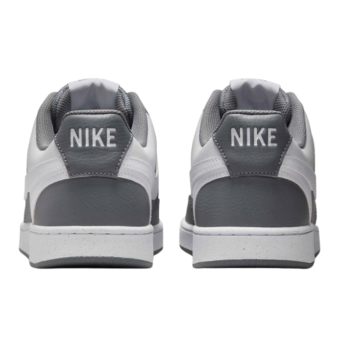 The Nike Court Vision Low Lace Ups Grey White offers a clean, retro basketball-inspired low-top silhouette with a premium white leather base and subtle grey synthetic overlays for versatile everyday style. Perforated detailing enhances breathability, while a padded collar and cushioned foam midsole provide all-day comfort. The durable rubber cupsole with pivot tread delivers reliable traction on urban streets.