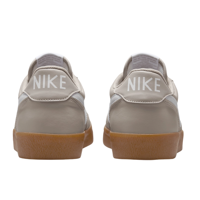 Nike Killshot 2 Leather in College Grey White Gum Medium Brown blends premium grey leather upper with white accents and brown suede overlays for timeless 1979 tennis heritage. Low-profile vulcanized gum rubber outsole delivers flexible traction and retro style, while padded collar ensures all-day comfort. Clean round toe, perforated detailing, and classic Swoosh branding create versatile courtside attitude perfect for streetwear