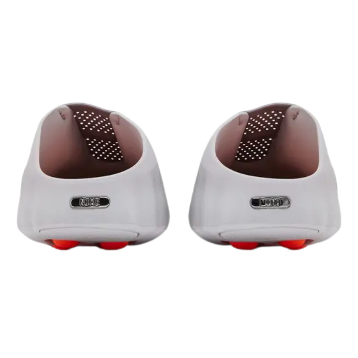 The Nike Mind 001 Mule 'Sail/Light Bone' features a minimalist sail foam upper with subtle light bone accents and chrome heel clip for versatile neutral styling. Its neuroscience-driven design includes 22 articulated foam nodes on the outsole that piston independently to stimulate foot sensory receptors, enhancing focus and mind-body connection. Perforated knit tongue ensures breathability, while soft midsole cushioning and rubber traction pods deliver pregame comfort.