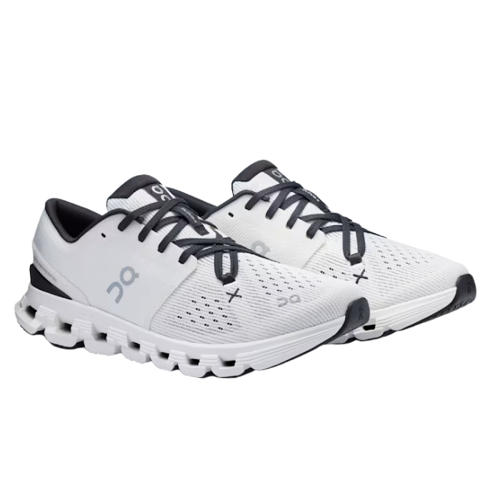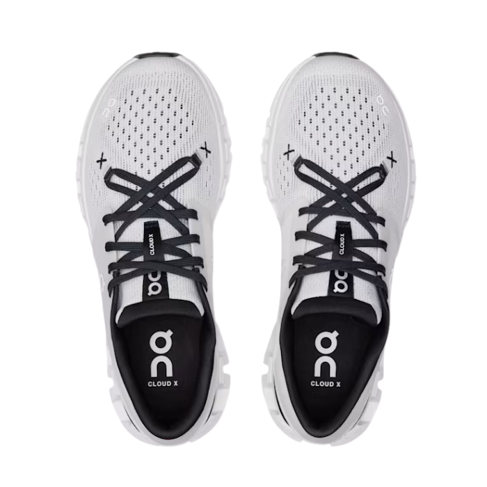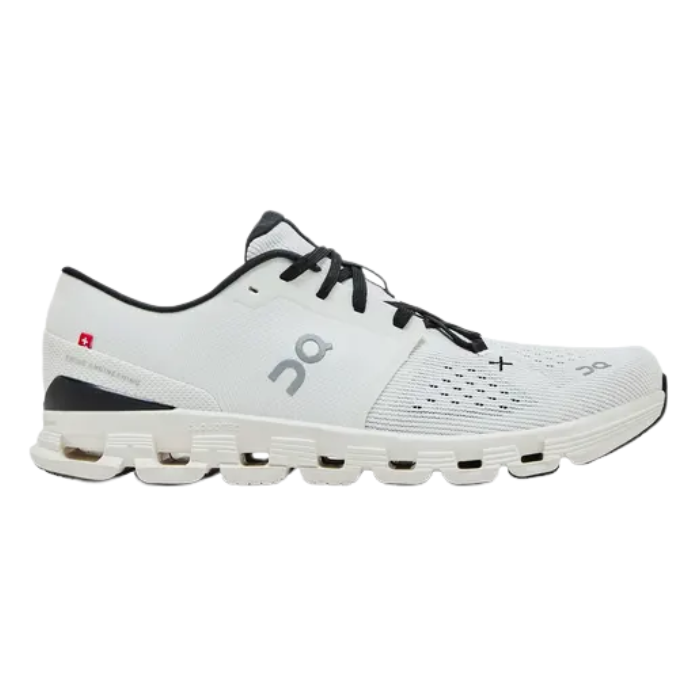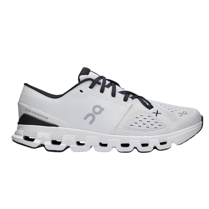 The On Running Cloud X 4 'Ivory Black' delivers versatile performance with CloudTec® cushioning and Helion™ superfoam, ensuring responsive comfort and soft landings. Its mesh upper, star lacing, X-shaped Speedboard®, and supportive midfoot cage offer agility, breathability, and a stable fit—perfect for workouts, runs, and all-day wear.