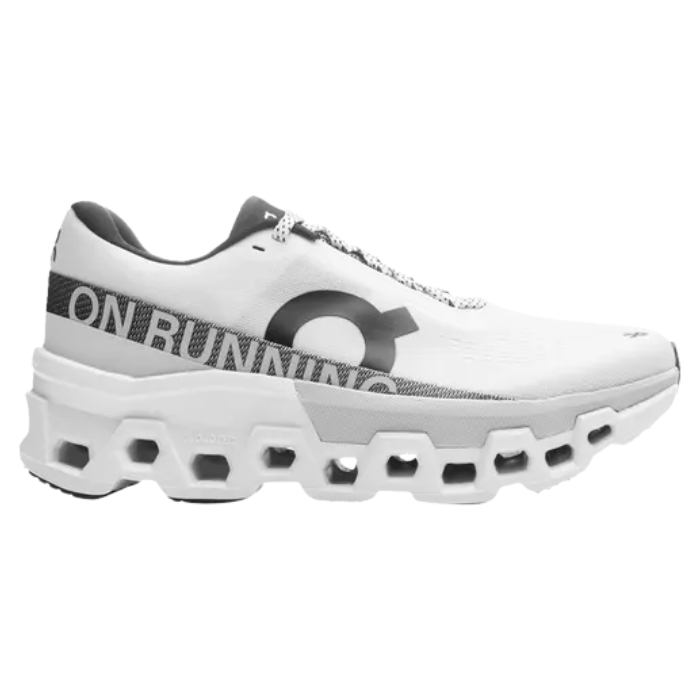 The On Running Cloudmonster 2 White Frost is a max-cushioned road runner built for big mileage with serious bounce. A dual-density Helion midsole and the brand’s largest CloudTec pods deliver soft landings and energetic take-offs, helped by a propulsive nylon Speedboard. The breathable white mesh upper and 6 mm drop create a smooth, forward-rolling ride ideal for daily training and long runs.
