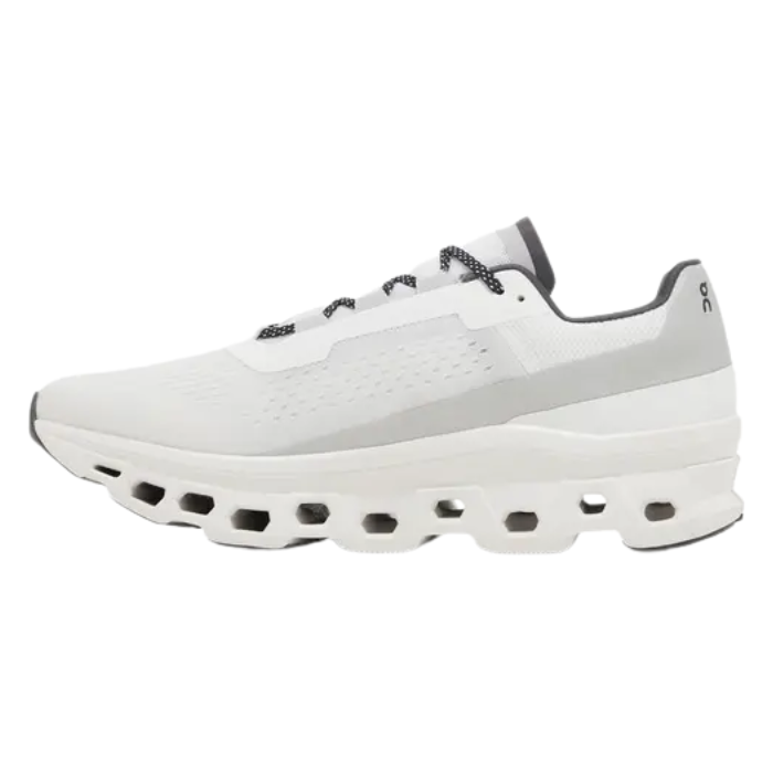 The On Running Cloudmonster All White combines innovative design with high performance for both road runs and all-day movement. Its sleek all-white upper uses lightweight, durable mesh for maximum breathability, while Helion™ superfoam and CloudTec pods deliver plush, springy cushioned landings. A Speedboard plate and exaggerated rocker shape provide energy return and smooth transitions, making it versatile for long distances and everyday comfort.