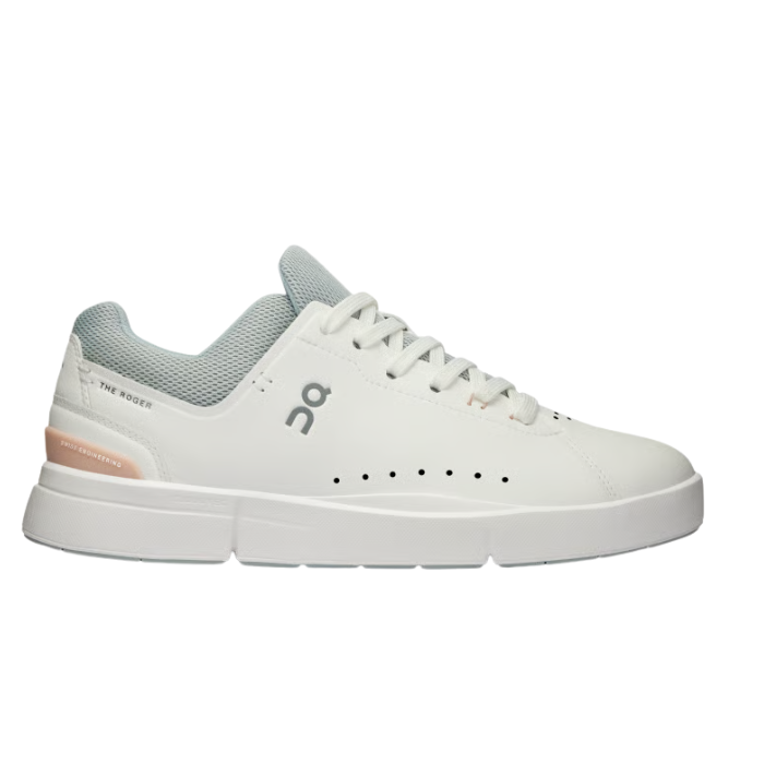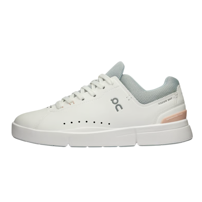 The On The Roger Advantage White Rosehip is a tennis-inspired lifestyle sneaker blending clean white vegan leather with subtle rosehip accents for versatile style. Perforated upper and mesh tongue ensure breathability, while concealed CloudTec cushioning and TPU Speedboard provide flex and comfort. Flex grooves and rubber outsole deliver natural movement and grip for all-day wear.