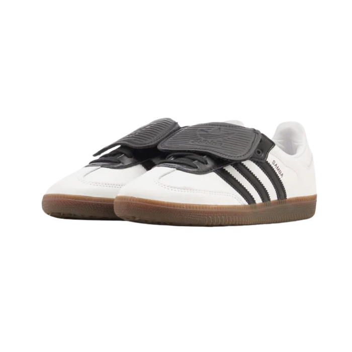 Adidas Samba LT 'White Black' is a sophisticated update to the classic Samba silhouette. It boasts a smooth premium white leather upper contrasted with sleek black leather 3-Stripes and a nubuck toe for a refined edge. The design includes a bold oversized tongue and a rubber outsole for lightweight durability and excellent grip. This versatile sneaker blends timeless sporty heritage with modern urban style, perfect for casual wear.