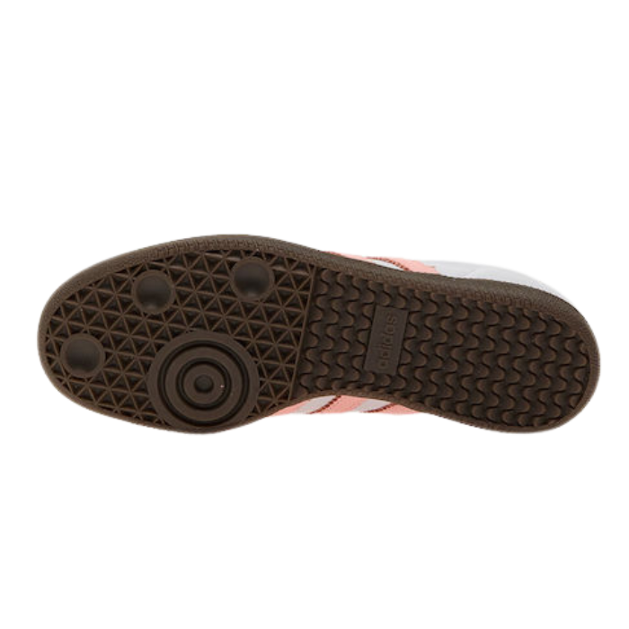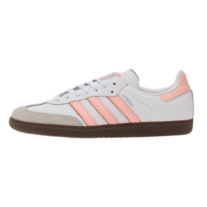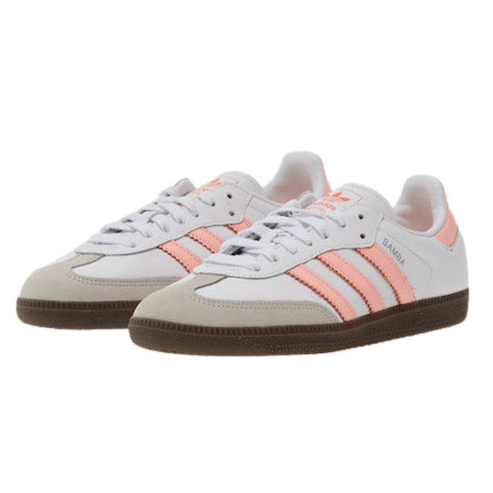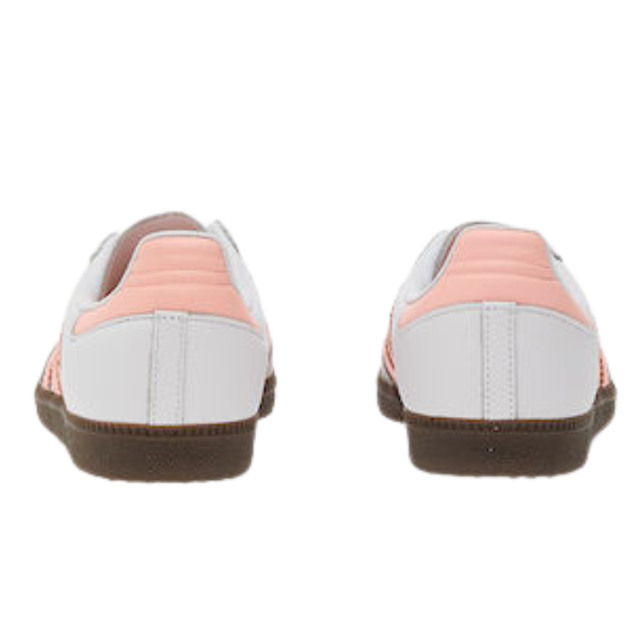 The Adidas Samba OG Wmns 'White Clear Semi Coral' features a smooth leather upper with nubuck toe cap for durability and classic style. Designed with agility and control in mind, it has a reinforced rubber sole for excellent traction. The white base brightens with subtle clear orange and semi coral accents, perfect for casual and streetwear looks.
